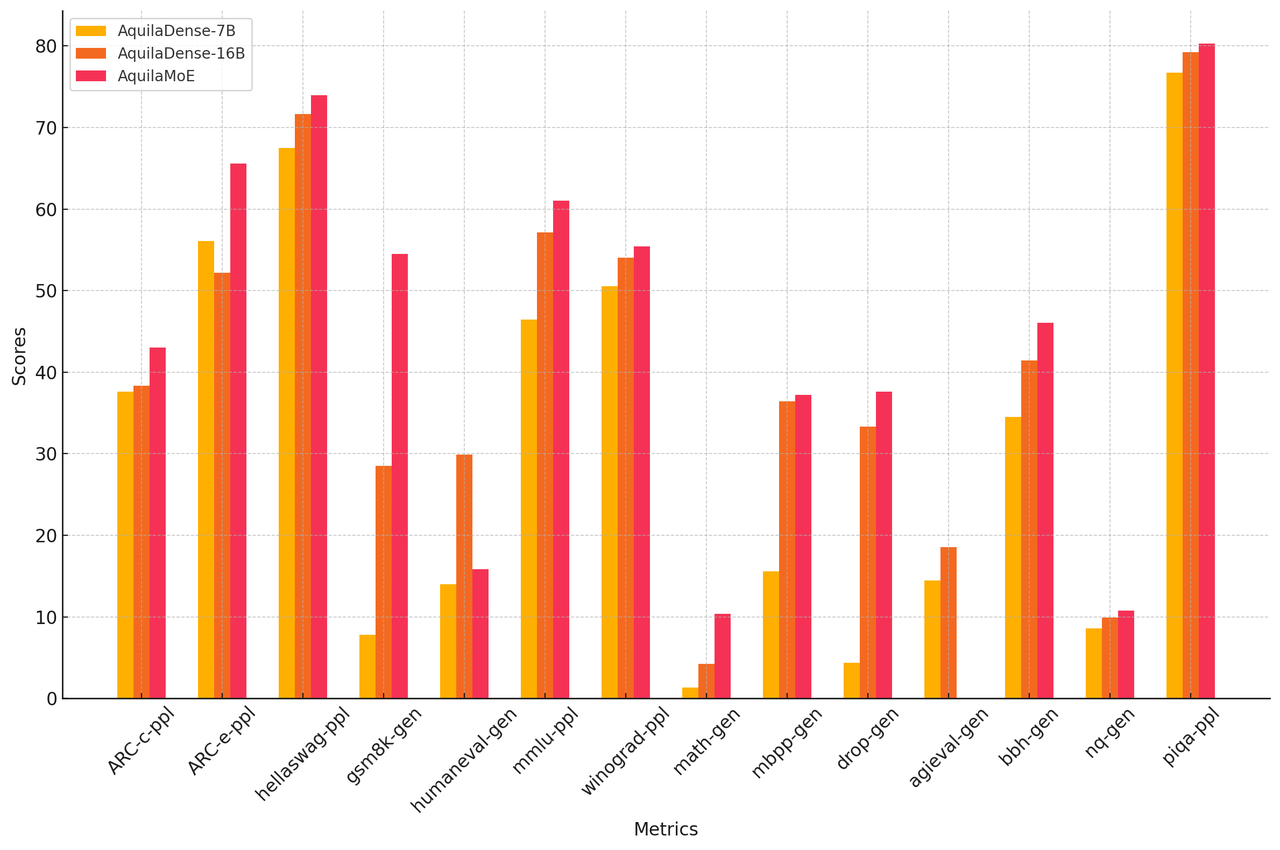 | Model | AquilaDense-7B | AquilaDense-16B | AquilaMoE |