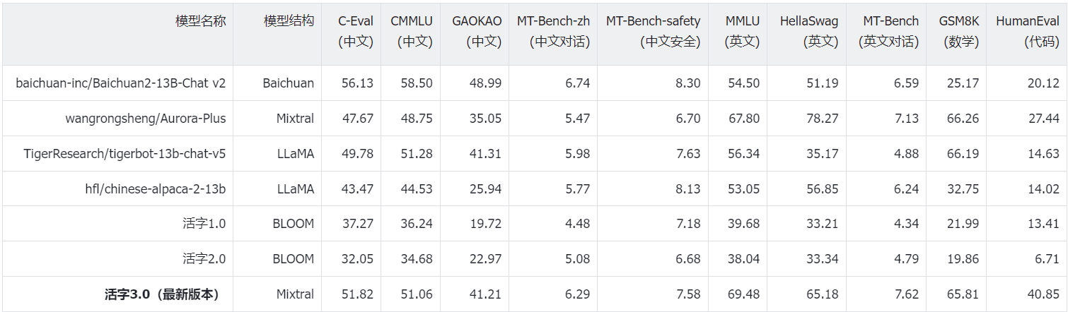 - 活字3.0为一个稀疏混合专家模型,支持32K上下文,具有丰富的中、英文知识和强大的数学推理、代码生成能力。活字3.0较旧版活字具有更强的指令遵循能力和安全性。