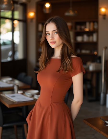 - text: ' beautiful detailed photograph, brown hair cascading over her shoulders, wearing a boatneck dress, standing in a cafe, looking at the viewer, smile'