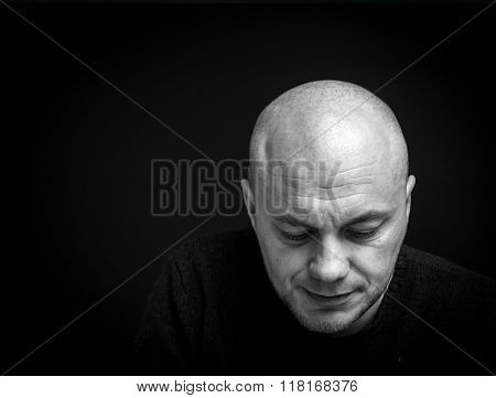 Male Model In Pensive Mood - Thoughtful Caucasian Guy Looking Away - Middle Age Man With Serious Con