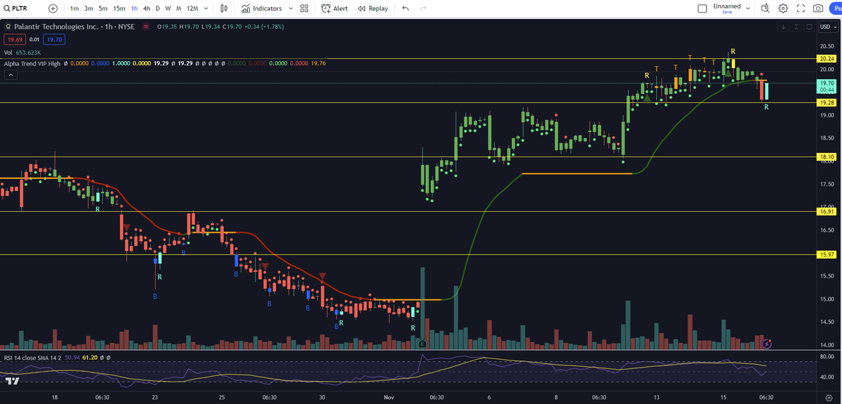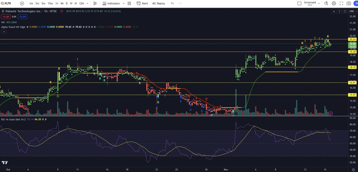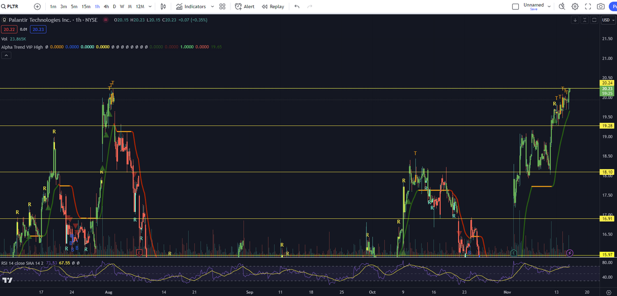 [{'ticker': '$PLTR', 'exchanges': [], 'price': '19.745', 'percentage_change': '-1.01%', '4h_ta_result': 'BUY', '4h_ta_details': '13 buy, 10 hold, 3 sell', '1d_ta_result': 'BUY', '1d_ta_details': '14 buy, 7 hold, 5 sell'}]