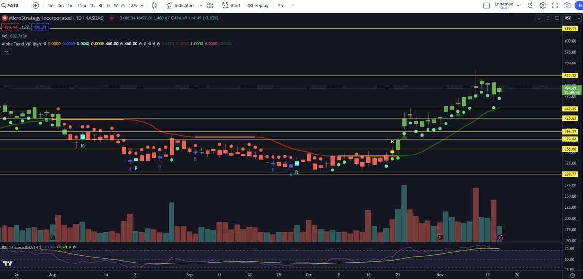 [{'ticker': '$MSTR', 'exchanges': [], 'price': '489.3', 'percentage_change': '-3.4%', '4h_ta_result': 'BUY', '4h_ta_details': '12 buy, 10 hold, 4 sell', '1d_ta_result': 'BUY', '1d_ta_details': '14 buy, 10 hold, 2 sell'}, {'ticker': '$META', 'exchanges': [], 'price': '334.21', 'percentage_change': '+0.45%', '4h_ta_result': 'STRONG_BUY', '4h_ta_details': '16 buy, 10 hold, 0 sell', '1d_ta_result': 'BUY', '1d_ta_details': '15 buy, 9 hold, 2 sell'}]