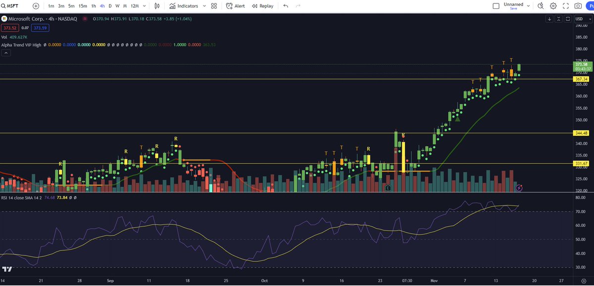 [{'ticker': '$MSFT', 'exchanges': [], 'price': '375.29', 'percentage_change': '+1.5%', '4h_ta_result': 'BUY', '4h_ta_details': '15 buy, 10 hold, 1 sell', '1d_ta_result': 'STRONG_BUY', '1d_ta_details': '17 buy, 9 hold, 0 sell'}]