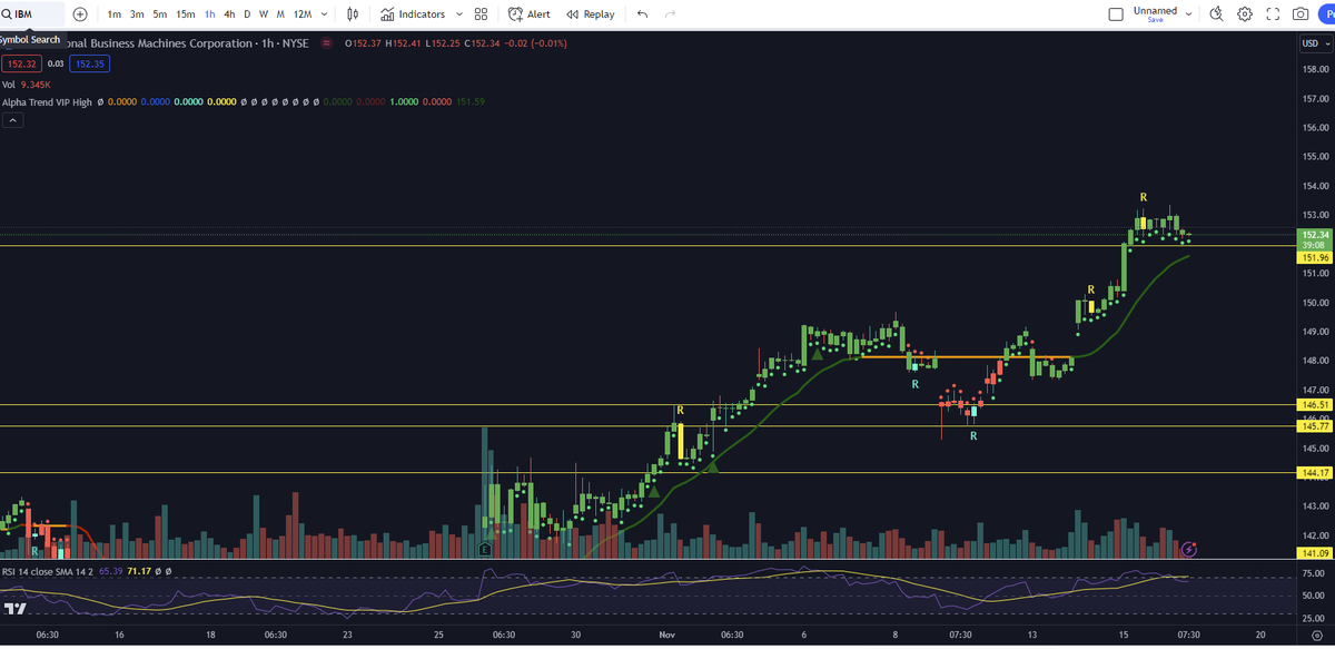 [{'ticker': '$IBM', 'exchanges': [], 'price': '152.86', 'percentage_change': '+0.18%', '4h_ta_result': 'BUY', '4h_ta_details': '14 buy, 9 hold, 3 sell', '1d_ta_result': 'BUY', '1d_ta_details': '15 buy, 8 hold, 3 sell'}]