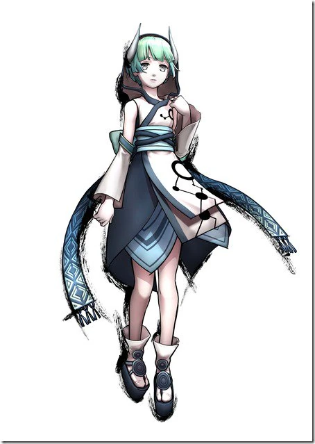 Kusabira is a mysterious girl who suddenly appears before Haseo during the events of Reconnection. She seems to know a thing or two surrounding the happenings at Lost Ground Q’ha Holme. Kusabira looks strikingly similar to Zelkova, in both physical appearance and attire, with silver hair, horns and wearing Japanese-style clothing. Her kimono also shows a black pattern that is very reminiscent of AIDA, hinting on her true identity. As AIDA<Tri-Edge> she was the first AIDA to become hostile toward