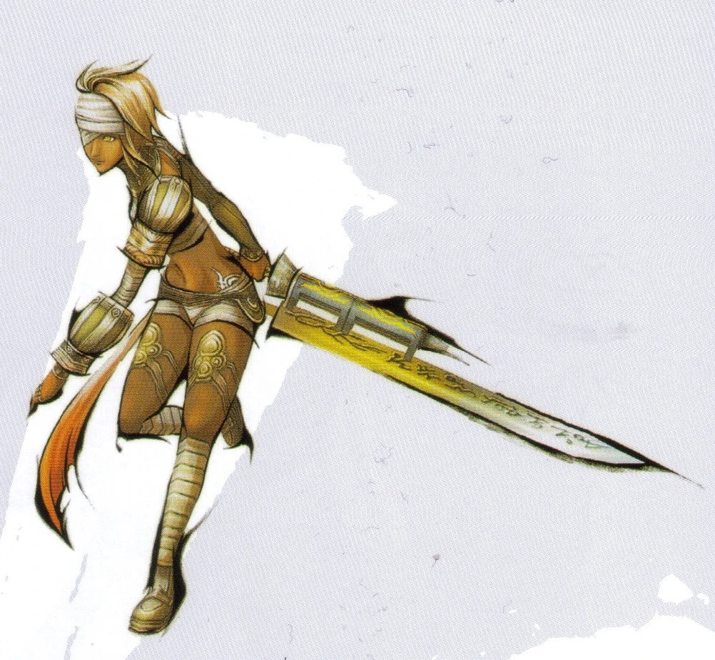 Tabby (タビー, Tabī) is a Tribal Grappler, a former member of the Twilight Brigade, and Guildmaster of the Paw Pad Squadron. Tabby's avatar is that of a young catgirl with long chestnut hair. She wears a short skirt, a very skimpy pink top and a green jewel covering her navel. Her character is based around the cat girl archetype and she has cat ears and a tail-like ponytail. During combat, she wields a rare set of cat claws that were given to her by Shino. Her wave tattoos are located on her face.