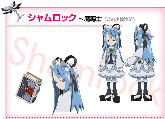 Shamrock (シャムロック, Shamurokku) is a character in .hack//Quantum. Guildmaster of the adventurer's guild Yata Mirror. With her members she embarks on the legendary quest "The One Sin." Shamrock's appearance is a younger and diminutive version of Aina's in the gothic-lolita fashion but her ribbon color, shoe, and dress design are somewhat altered. Reiko Saeki (佐伯令子) is the half sister of Jun Bansyoya and the player behind Pi and Ender seven years earlier. She is very business like and serious but is