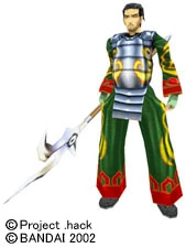 This is a list of the Minor PCs who played a role in .hack//Legend of the Twilight. Very few of them were given names, either in the series or in the infobooks, so there are only a few names listed below. For the more information, see Miss Collision. This Heavy Blade first appears in episode 1, and reappears several times throughout the series. She is part of a running gag in which a male character, usually Shugo accidentally runs into her large breasts. The end result is a powerful slap in the