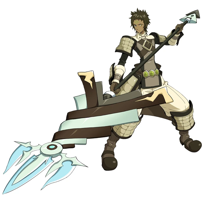 "If you desire to know the truth, you must also have the courage to accept it." — Crim — Crim (クリム, Kurimu) was one of the founders of the Crimson Knights. He is a Long Arm of tremendous skill and power. Crim is a male Long Arm with spiky blue hair. He wears a red jacket and flared red and yellow pants. He keeps his jacket open, revealing his bare chest which is marked with his wave symbol. Crim is a very happy-go-lucky player. He enjoys living on the edge and testing his skills against strong m