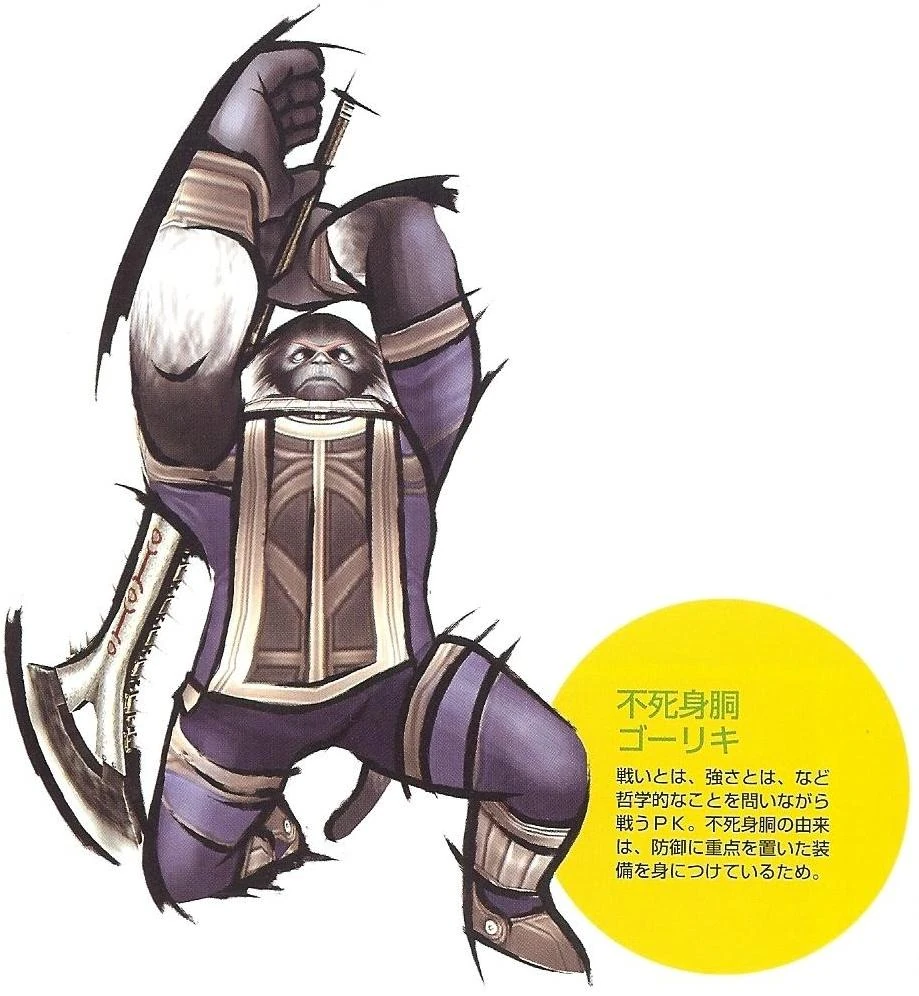 "Defeat...Ovan!!!" — Gord — Gord (ゴード) is an ex-member of the Twilight Brigade. He is obsessed with surpassing Ovan and since leaving the guild has become a PKer of great skill. Gord is a young purple haired man with tanned skin dressed in tight gray pants, and a white sleeveless shirt. He accents his outfit by wearing a strap across his chest, and by wearing blue wristguards on his arms. His hair is kept in a ponytail, and his bangs are parted so they partially cover his face. His wave tattoos