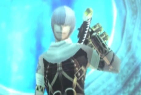 "It's not about what you can do, it's what you want to do." — Seisaku — Seisaku (清作) is a character in .hack//G.U. who has multiple PCs with the same name within the franchise. Seisaku is a tall man, with long silver hair that he keeps in a ponytail. Green tattoos decorate his face. While he played a Blade Brandier, his character wore a light blue fighting outfit. His Harvest Cleric has the same appearance, though the fighting outfit is replaced with a robe decorated in the same style. While on