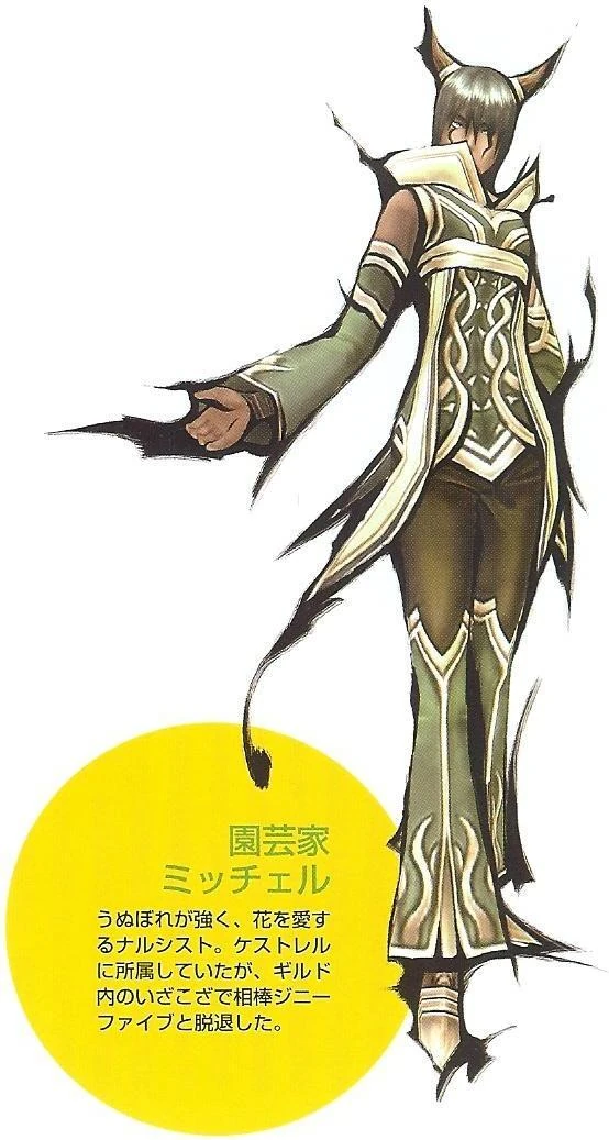 "'" — Michelle — Michelle (ミッチェル) is a Chaotic PK with the nickname Garden Michelle. Eishi Tsuda (津田詠史) is an eighteen-year-old male high school student living in Fukushima Prefecture.