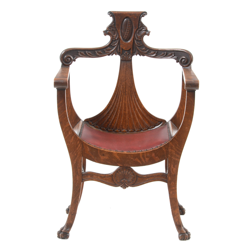 Antique Oak Curule Chair | |