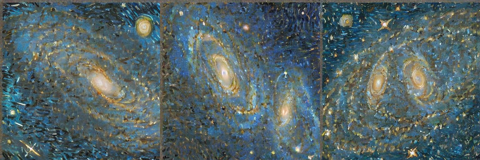 prompt: painting of sks galaxies merging in van gogh style, 8k, high quality, trending on artstation